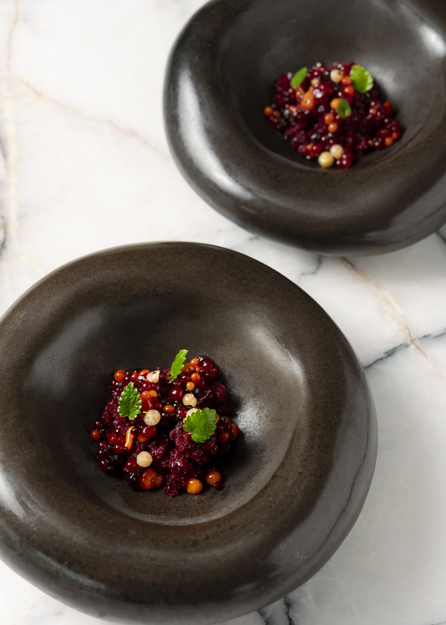 Culinary Director Alex Kim draws inspiration from his travels through Peru, where he experienced how ingredients evolve at different elevations, each altitude producing distinct flavours and products. This menu embraces that same philosophy here in BC, taking guests on a journey through the Pacific Northwest’s diverse landscapes and ingredients, moving from sea to land, mountains to plains, with each course reflecting the unique character of its origin.