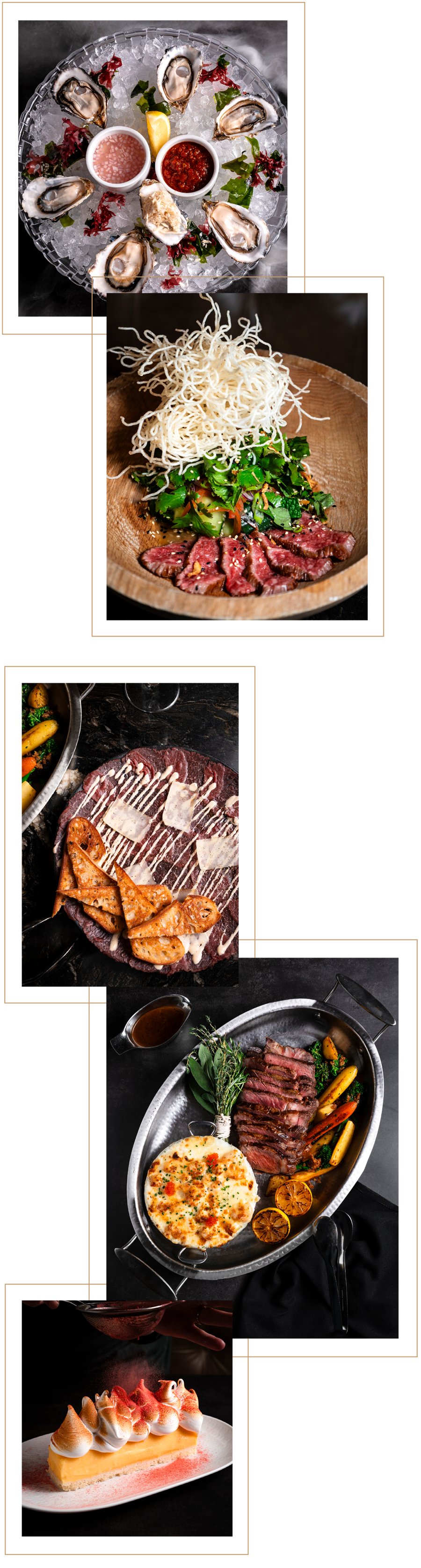 layered potatoes, prawns, bay scallops, tobiko cream, fior di latte